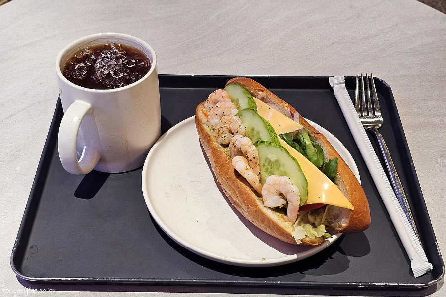 엔제리너스에서 만원만 있으면 이렇게 새우 들어간 반미 샌드위치에 아이스 아메리카노까지 야무지게 먹을 수가 있답니다.. 올데이세트라서 하루종일 할인된다는 게 중요..