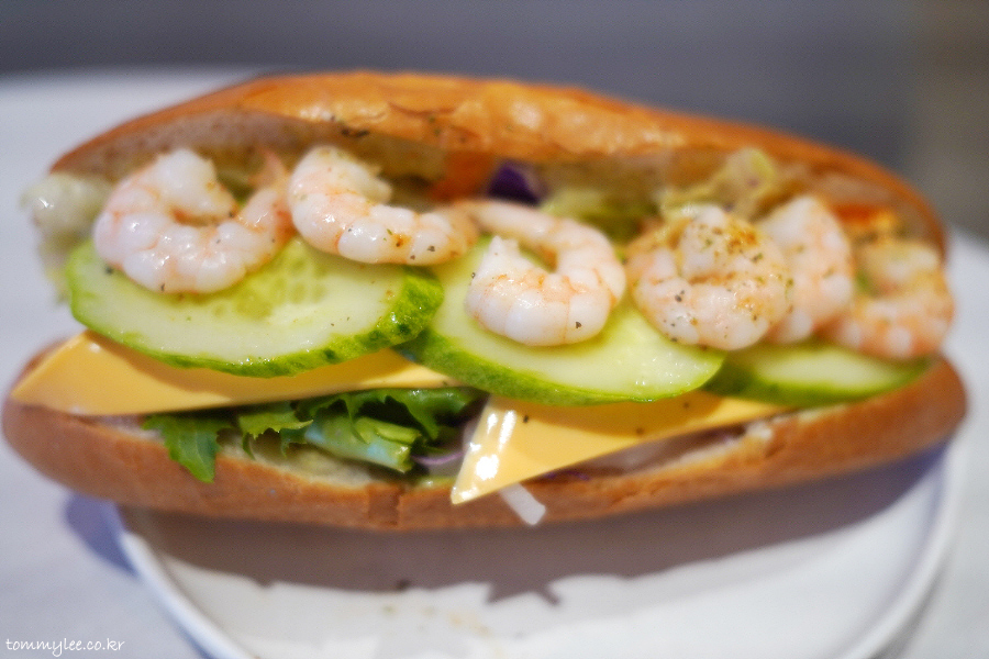 신선한 쌀바게트에 통통한 케이준 쉬림프에 야채 잔뜩.. 정말 맛이 없을 수가 없는..