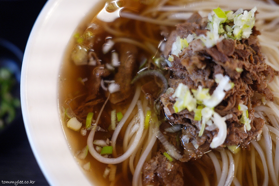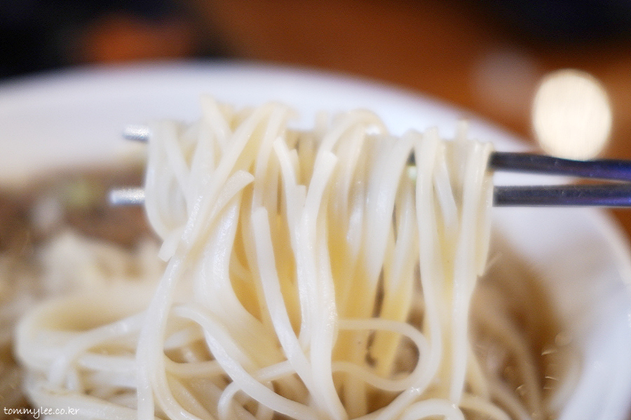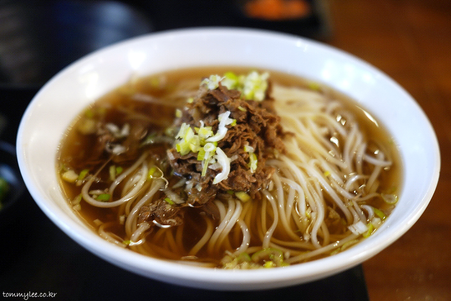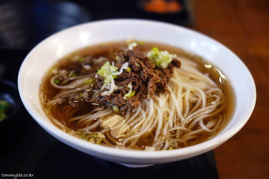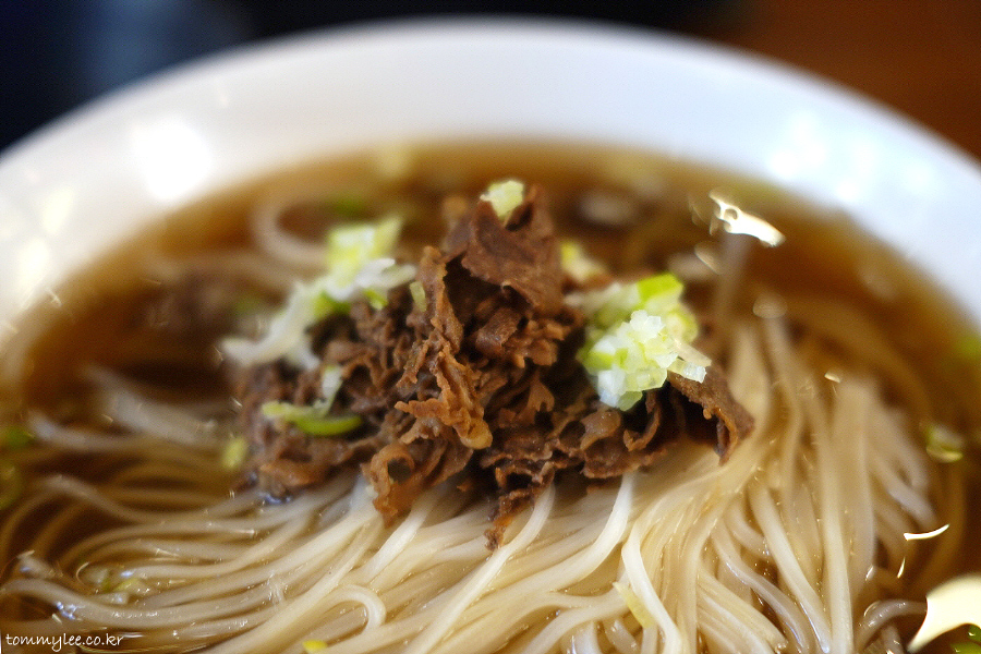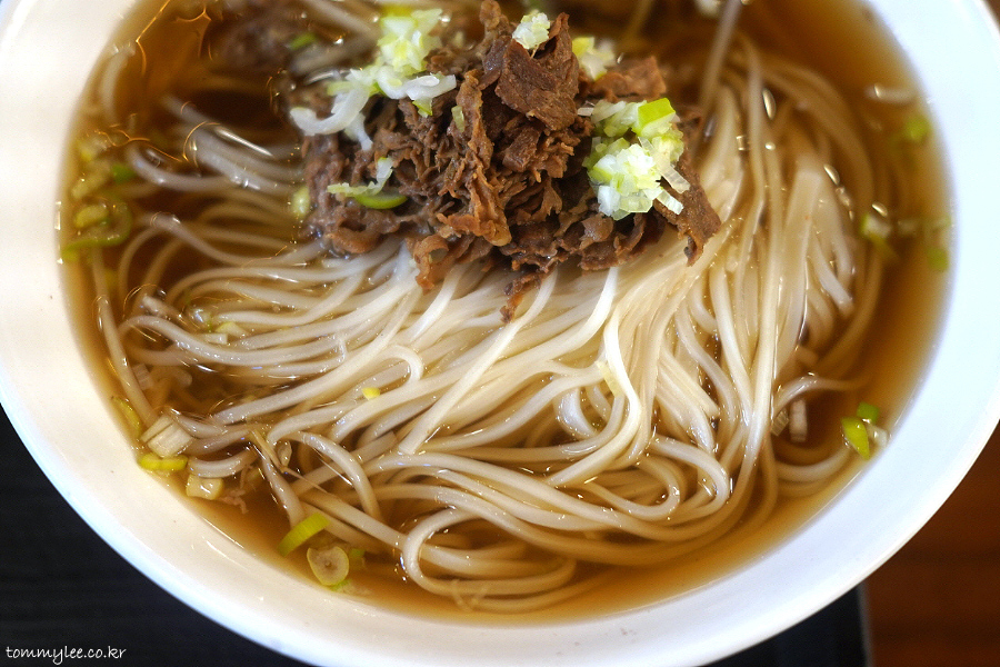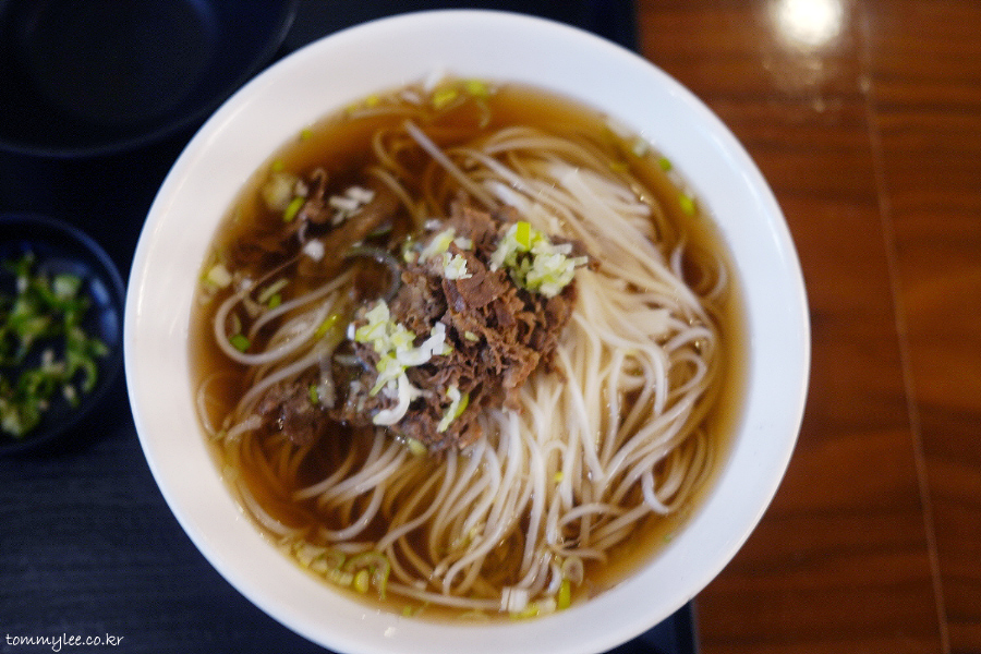 불고기토핑을 올린 국수입니다.. 부민옥 메뉴 중에서 가장 저렴한 가격 11,000원입니다.. 메밀국수보다 1천원 저렴하고 육개장칼국수보다는 2천원 언더.. 육개장 칼국수 같이 우동면 썼으려나 했는데.. 의외로 면은 쌀국수면..