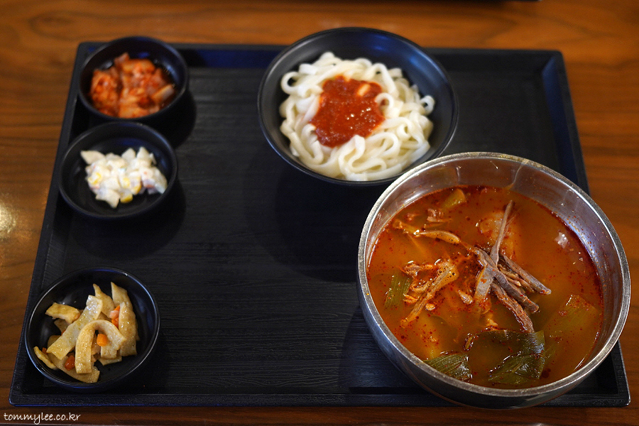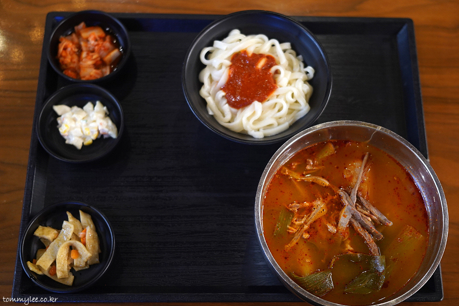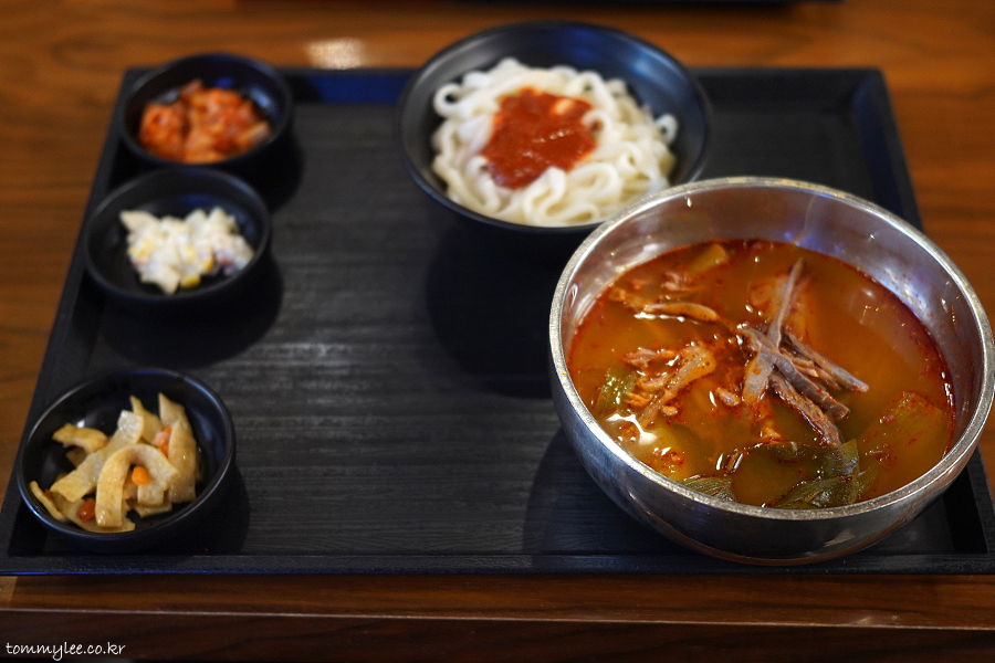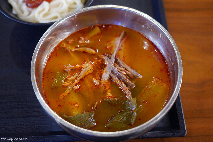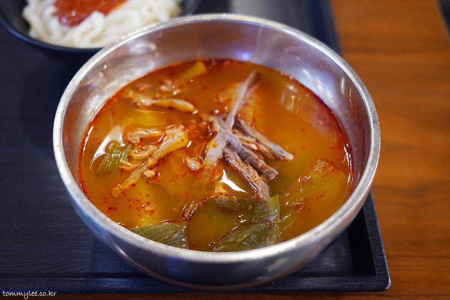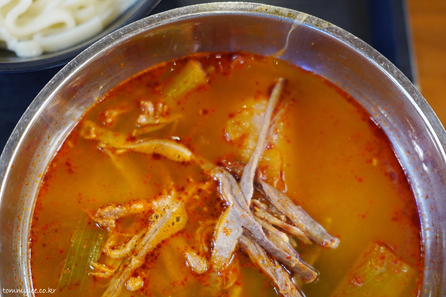 육개장 칼국수는 뭐 요런 느낌.. 육개장이랑 똑같은데 밥 대신 우동면이 나오는 것만 다릅니다..