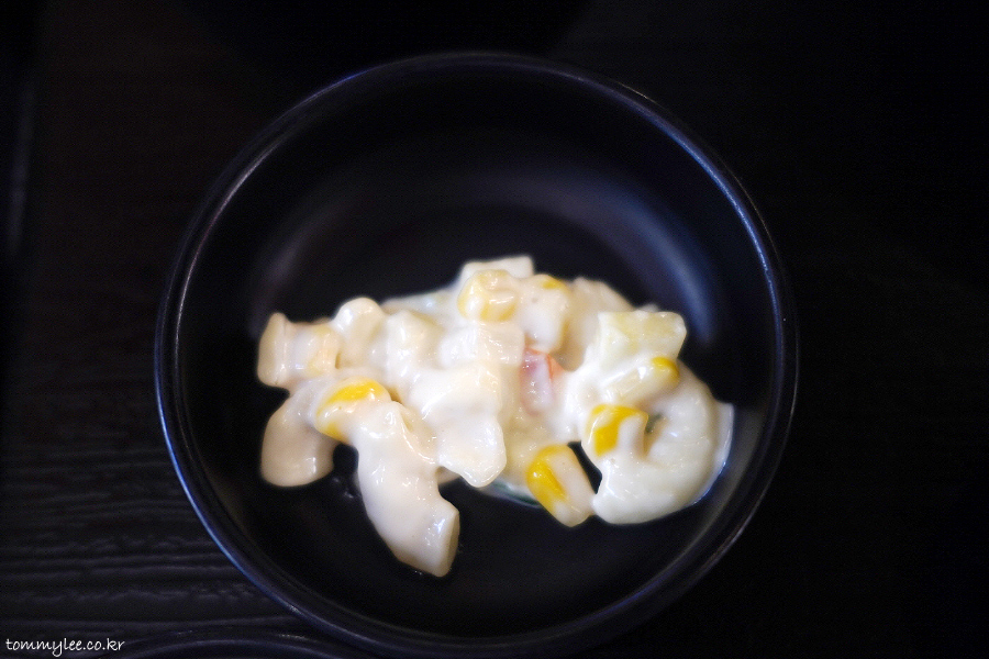 콘샐러드 진짜 뭐죠.. 마카로니 반 스위트콘 반.. ㅋㅋㅋ..