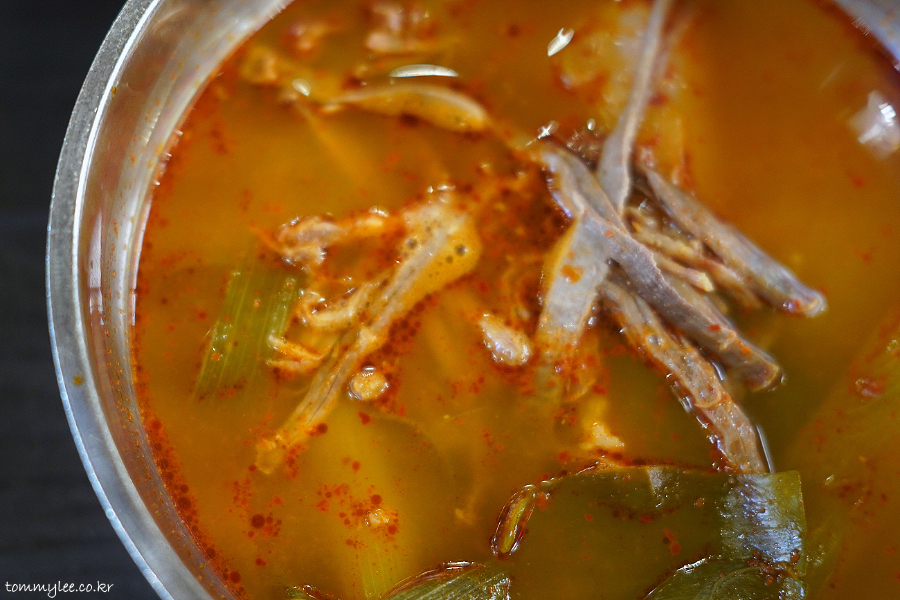 큼직큼직하게 파가 들어간 부민옥 육개장의 모습..
