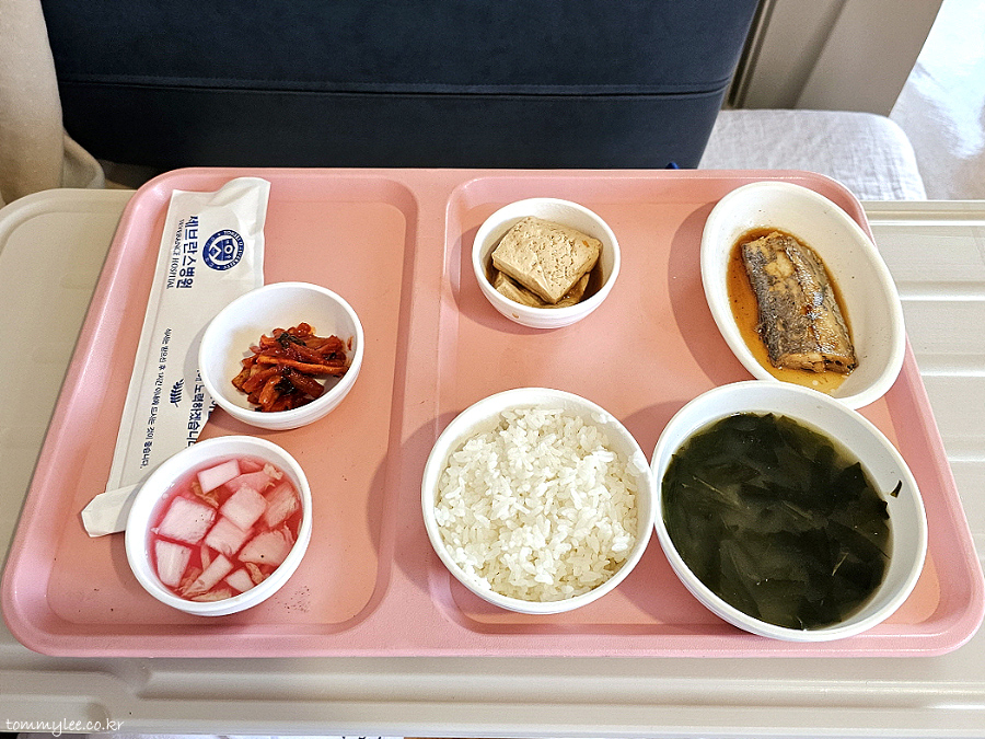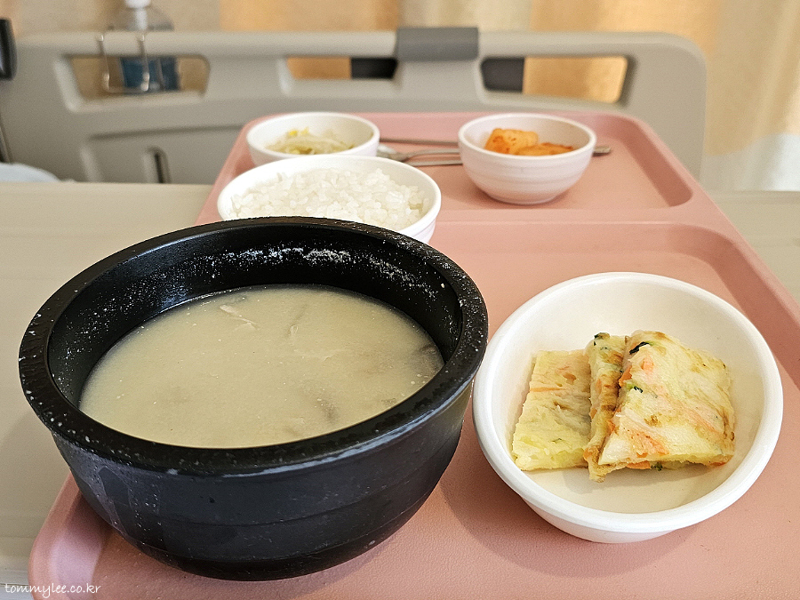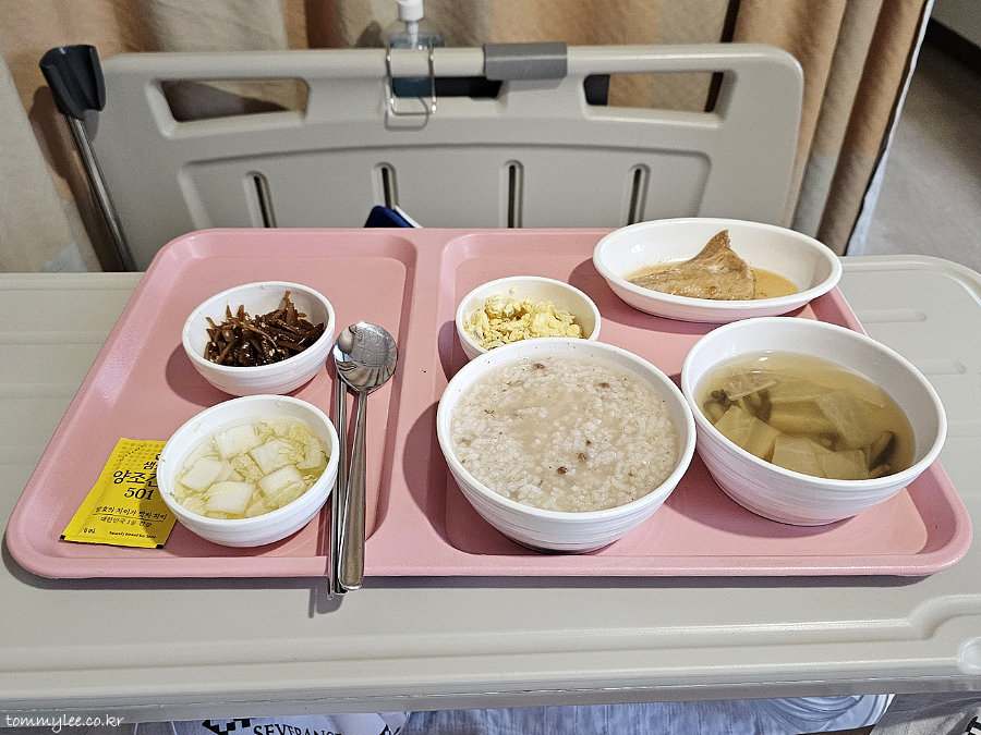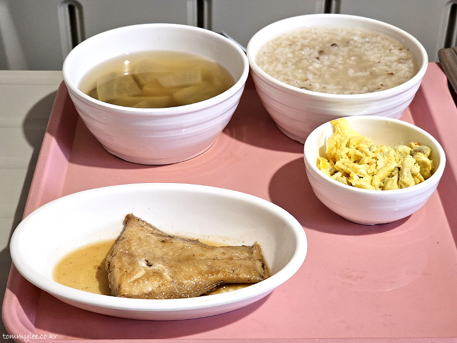 소고기죽이 나오긴 했는데 의외로 반찬은 일반식처럼 생선에 계란볶음까지 제대로 나와서.. 회복식으로 죽을 굳이 먹어야 하나 싶었어요.. 죽이랑 물김치만 나오면 치료식인가.. ㅡㅡa.. 심지어 계란은 촉촉하지도 않았음.. ㅋㅋㅋ.. 암튼 식사하는 내내 이 죽을 먹는 의미가 있나 싶었던..