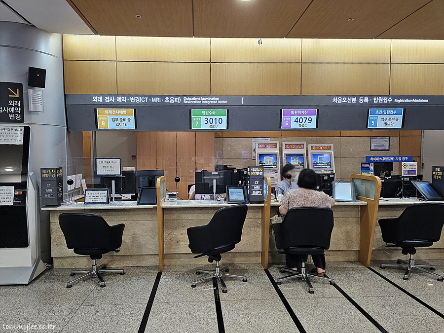 오른편의 처음 오신 분 등록, 입원접수창구에서 내 번호가 뜨길 기다리면 되는 거.. 입원접수 창구가 널널해서 의외로 거의 바로 입원수속이 진행되었어요.. 입원할 때는 따로 입원 비용이 청구되진 않았네요.. 저처럼 3박4일 정도로 입원 기간이 길지 않을 경우 중간 정산없이 전부 퇴원할 때 몰아서 한꺼번에 낸다고 보시면 되겠습니다..