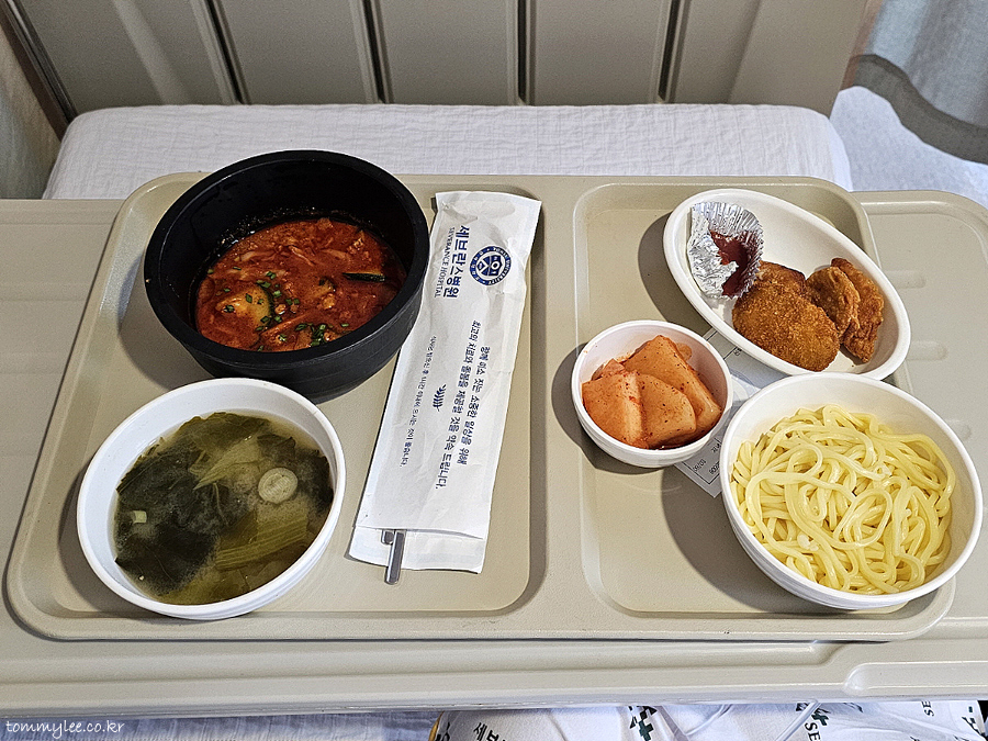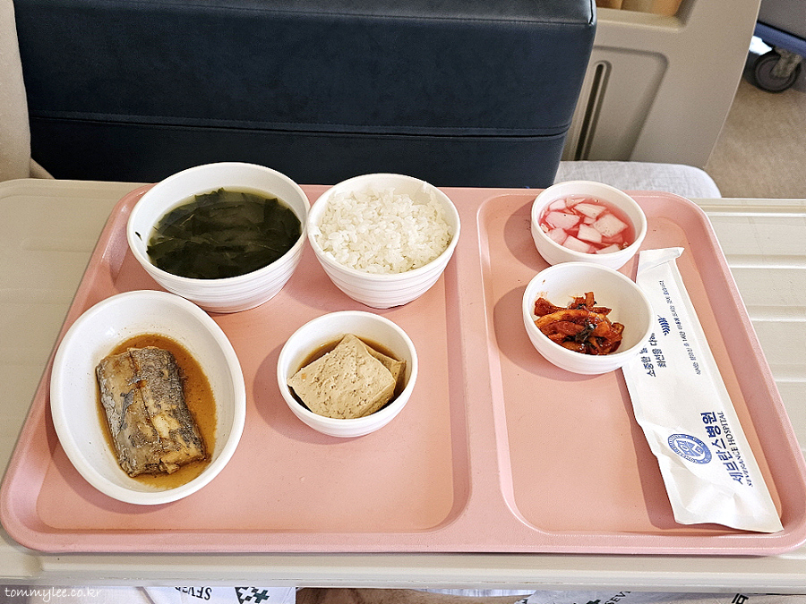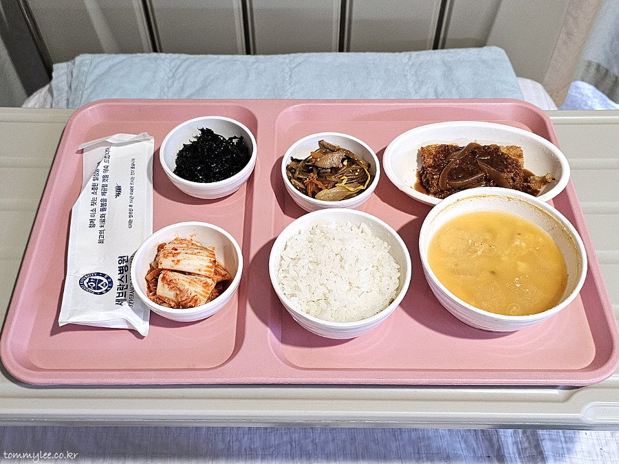 12시부터 수술 때까지 쭉 금식이어서 두 번째 날 조식, 중식은 없어요.. 아무것도 입에 대면 안됩니다.. 물마저도 절대 금지라고 수차례 강조.. 그나저나 수술은 마취 덕분에 언제 하는지도 모르게 자고 일어나니 싱겁게(?) 끝나버렸어요.. 대기 시간은 매우 길고 지루했지만 수술은 의식을 잃은 후 후다닥 끝남.. ㅡㅡㅋ..