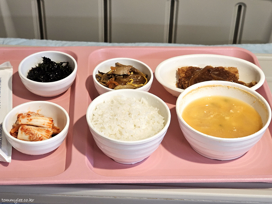 난이도 높은 어려운 수술은 아니었어서 입원이 2박3일이어도 충분했을 것 같았는데요.. 진통제를 끊을 순 없기 때문에 3박4일이 되지 않았나 싶습니다.. 퇴원일 새벽 체온이 37.2도로 적절하지 않아서.. 막판까지 체온을 37 언더로 조정하는 노력을 한 후에 퇴원할 수 있었네요.. 5인실 첫 경험이었는데 만실이 아니어서 화장실 이용 등이 여유로웠고.. 병원비 또한 200 언더로 생각보다는 덜 나와서 전체적으로는 만족스러운 입원이 되었답니다.. 9년만의 세브란스병원 본관 입원생활 식단체험이었는데요.. 시그니처 분홍색 식판부터가 예전 그대로고 메뉴도 전과 크게 달라진 점은 없었다는 내용이 되겠네요.. 밥은 퍼석하고 국은 미적지근한 세브란스 병원식의 고질적인 문제 또한 여전했지만 김치류가 슴슴해진 점은 칭찬합니다.. 음.. 수술 일정 때문에 부득이하게 베이글 조식을 못먹은 게 아쉬움으로 남음.. 세브란스병원 본원 3박4일 환자식 후기 끝~..