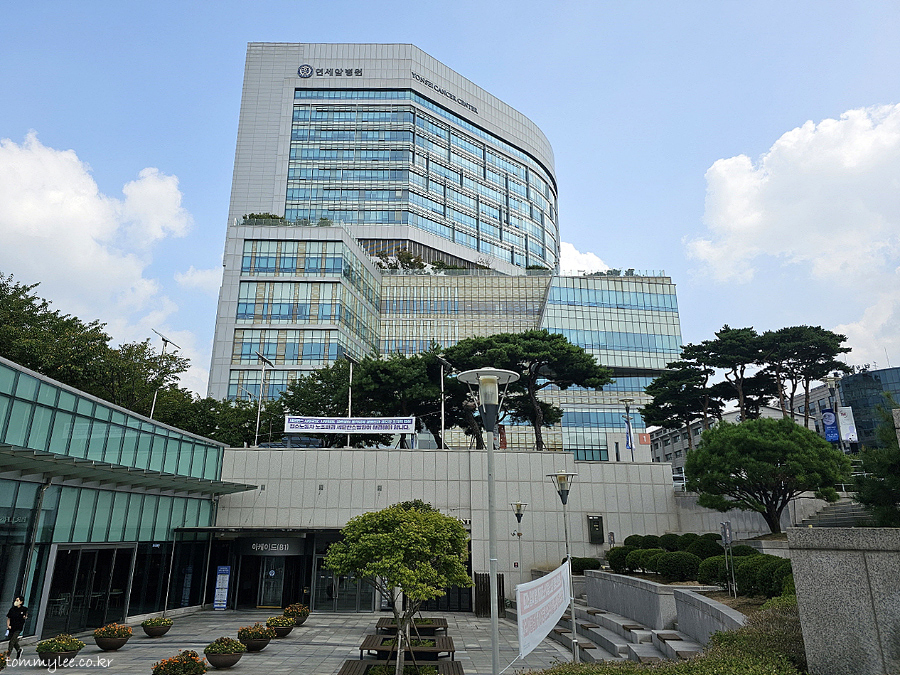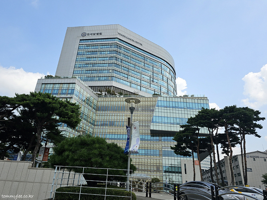 성산로 연세대삼거리 쪽에서 보이는 신촌 세브란스병원은 이런 모습인데요.. 위의 병원은 연세암병원으로 제가 입원하는 세브란스병원 메인 병동인 본관과는 다른 병원이랍니다.. 본관은 훨씬 안쪽에 있음..