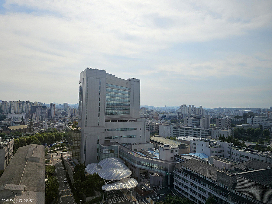 정면 뷰는 뭐 요러했습니다.. 세브란스 본관은 21층 건물인데요.. 저는 중간층 정도에 위치했던지라 상층뷰까진 아니었음.. 그래도 이 정도 뷰는 나왔고요..