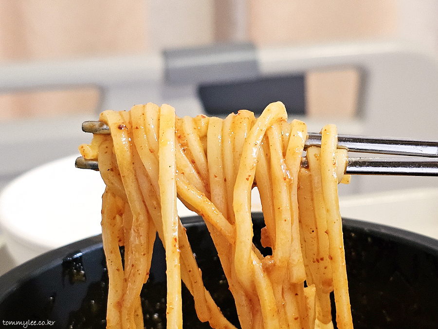 합체해서 비벼보면 이런 느낌.. 뜨거운 비빔면이고 뭐랄까 볶은우동의 그 맛에 가까웠던 의외의 맛.. 제육스러운 느낌은 아니었으나 달달한 맛이 있으면서 칼칼하고 나쁘진 않았네요..