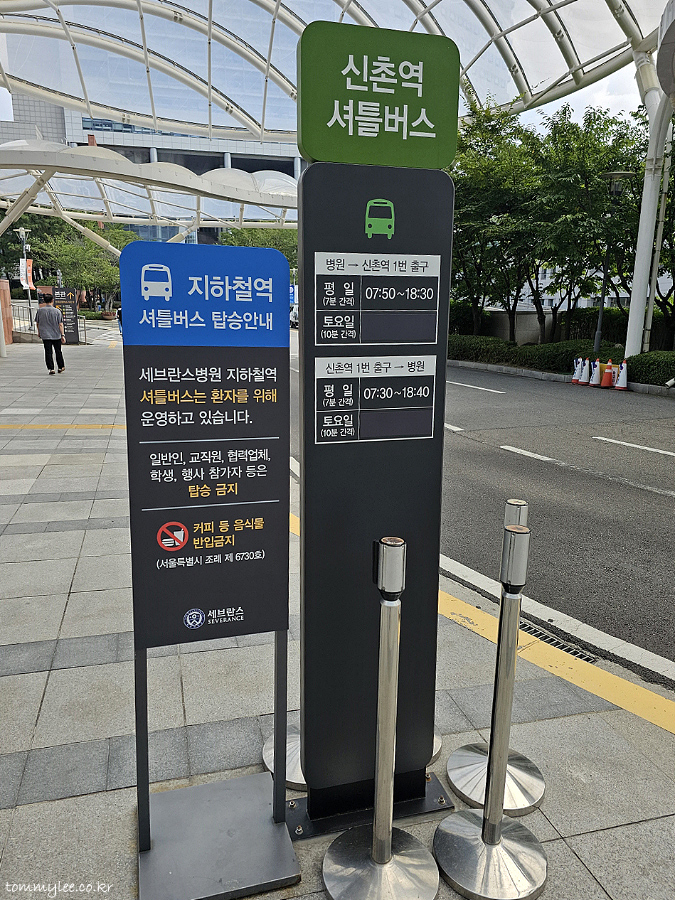 세브란스병원 본원은 신촌역에서 셔틀버스를 운행하고 있는데요.. 평일 운행시간은 07:50~18:30에 7분간격으로 운행이고요.. 토요일은 07:30~18:40, 10분 간격 운행이라고 합니다.. 저는 일요일 입원이었고, 핸디캡이 있어 대중교통을 이용할 수 없기도 해서 그냥 택시 타고 도착.. ㅠ.ㅠ..