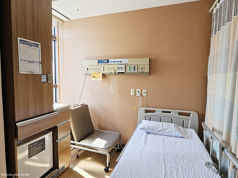 전에 세브란스 입원했을 땐 다인실은 물론 2인실도 환자들로 꽉 차있어서.. 일주일 이상 1인실을 이용해 입원료가 상당히 많이 나와 중간정산도 하고 했었는데요.. 이번에는 건강보험 적용되는 꿈의(?) 5인실로 배정받았습니다.. 병실은 오마카세였지만 의외로 5인실 자리는 선택이 가능하더군요.. 제가 일찍 도착해서 말고 병실에 입원 환자가 1명 뿐이었음.. 일찍 입원해야 원하는 자리 선점 가능하단 팁.. 암튼 여기 창가 쪽 자리로 즉석으로 제가 선택했어요.. 다인실이어도 개인별로 냉장고 이용가능하고.. 잠금장치 있는 개인용 사물함도 지급됩니다.. 옷걸이도 여러개 기본 세팅되어 있기도 하고 굿굿.. 보호자용 의자도 있고.. 냉장고 위옆으로 이것저것 수납할 수 있는 서랍 공간도 꽤 넉넉하게 있었어요.. 커튼을 치면 나름 프라이빗한 공간으로 변신되기도 했고, 5인실 의외로 나쁘지 않은 듯.. 소음 문제에서 자유롭진 않아요.. 조곤조곤 이야기 해도 진짜 다 들려요.. 다인실이 많이 시끄럽긴 합니다.. 주변 소음에 많이 민감하신 분은 1인실 추천..