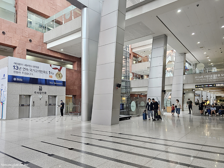 세브란스 본관 로비층에 해당되는 3층의 모습입니다.. 주차장 전용 엘리베이터에 13년 연속 국가고객만족도 1위라는 병원 측의 주장이 쓰여있는데.. 무슨 근거인지는 모르겠는..