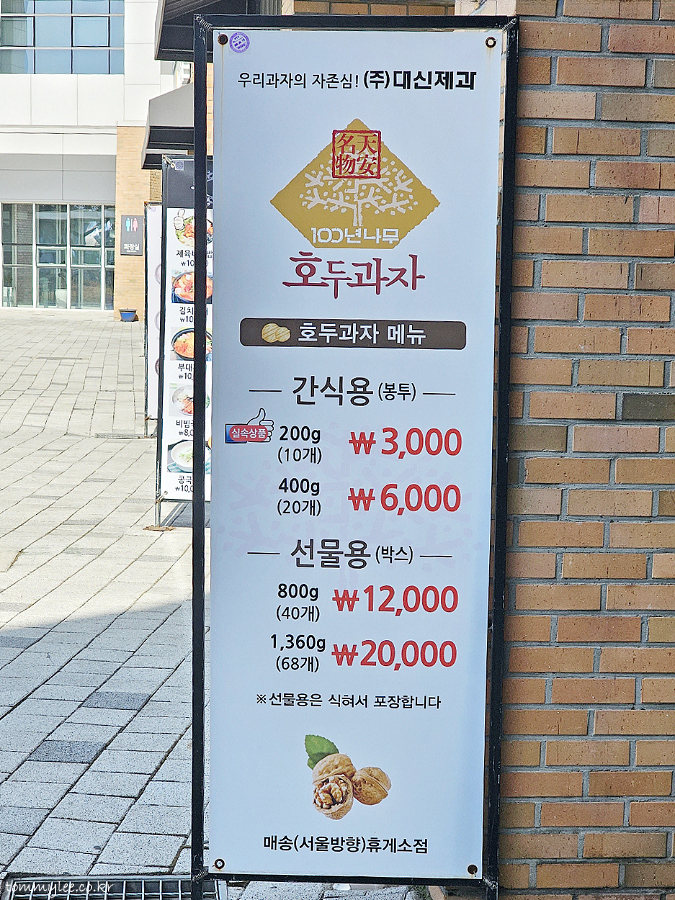 박스포장된 선물용보단 봉투에 든 호두과자를 주문하는 게 더 맛이 좋고.. 식으면 맛이 떨어지니 사자마자 바로 드시는 걸 추천..