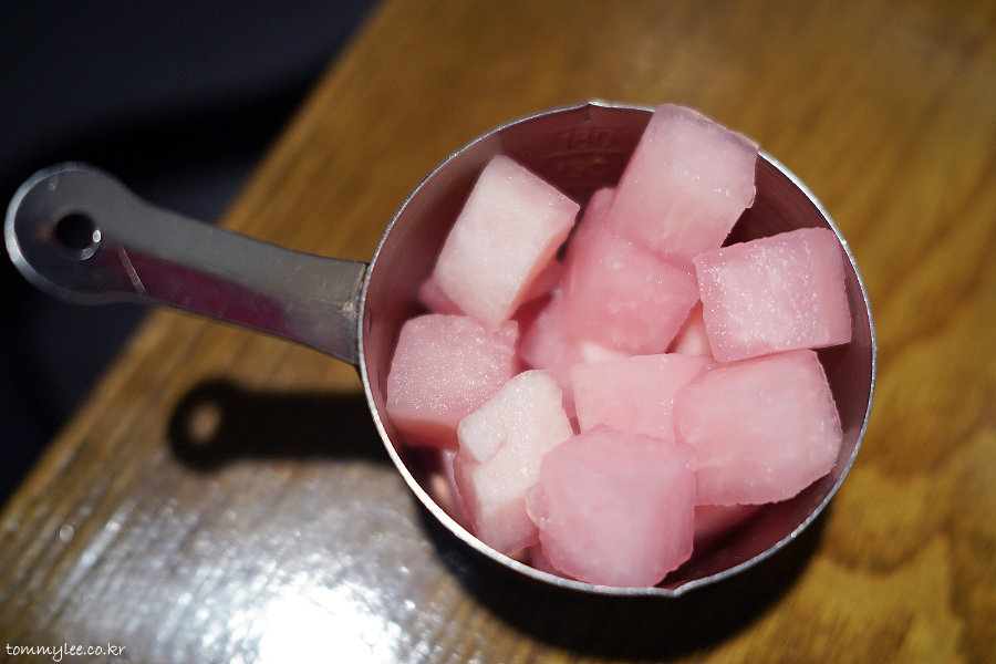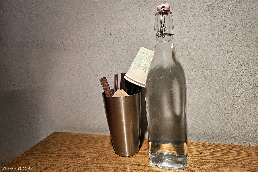 주말이라 살짝 걱정했는데 의외로 웨이팅 없이 바로 착석할 수 있었습니다.. 그야말로 완전 만석이었는데요.. 손님은 대부분 20~30대 여성.. 남자는 저희 뿐.. ㅋㅋㅋ.. 바로 물병과 연장통 지급 되었고요..