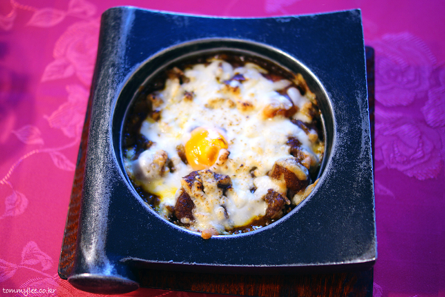 무려 2011년에 모지코에서 먹었던 야끼카레는 이런 모습이었습니다.. 두툼한 철판그릇이 뜨겁게 달궈져 카레 누룽지가 생길 정도로 제대로 지글지글 하게 나와야 하는데요..