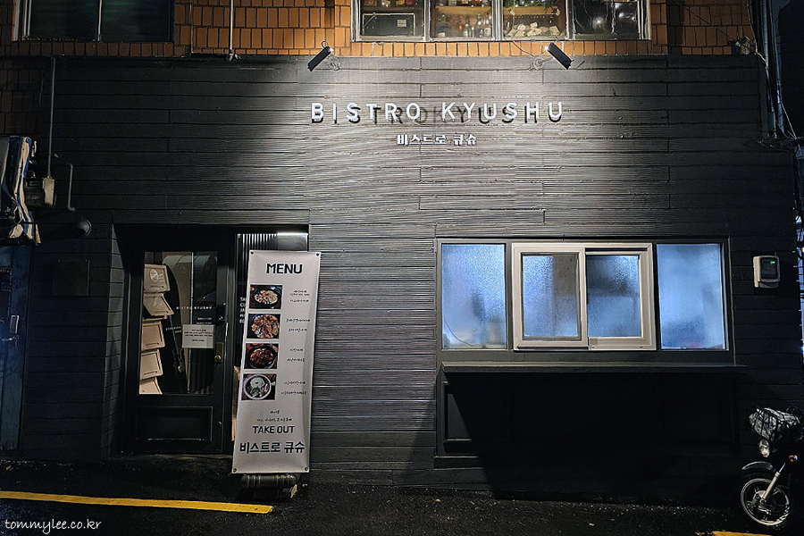 비스트로큐슈는 홍대 앞 산울림소극장 버스정류장 인근에 있어요.. 와우산로를 등지고 있어서 큰 길가에서 안보이긴 하는데 나쁜 위치는 아님..