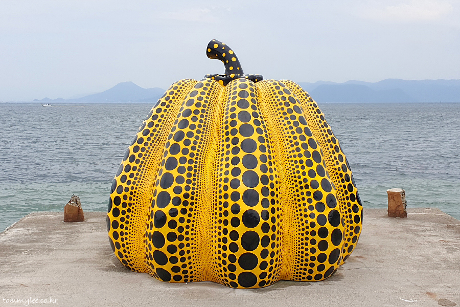 지인분의 소망이었던 나오시마에 있는 쿠사마 야요이의 노란호박 오브제 기념촬영.. 이 호박을 보기 위해서 타카마츠를 왔다고 해도 과언이 아니었는데.. 저는 두 번째이지긴 하지만 노란 호박을 다시 볼 수 있어 훈훈한 시간이었답니다.. 나오시마 갔을 때 날씨가 살짝 꾸리꾸리해서 아쉽지만.. 세토내해와 노란 호박을 함께 담아볼 수 있어서 좋았고요..