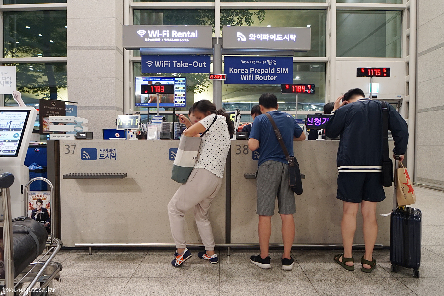 와이파이도시락 제1여객터미널 입국층 로밍센터를 찾았답니다.. 와이파이도시락 입국층 점포는 2곳이 있는데요.. 3번과 12번 출입구 부근에 위치하고 있어요..