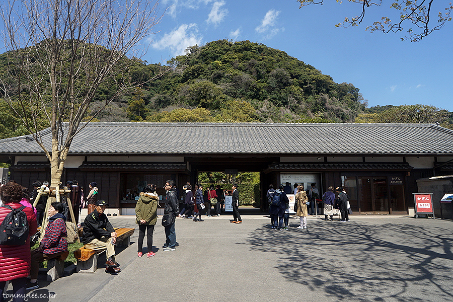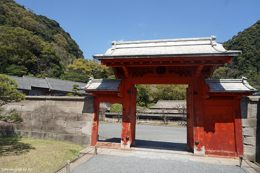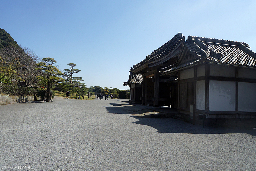 드디어 스즈몬 도착입니다.. 문 사이즈가 작고 사진으로 본 것보다 멋지지도 않았는데.. 유독 문화재스러운 느낌이 들긴 했네요.. 에도시대에는 이 문이 센간엔 정문이었다고 합니다.. 이 스즈몬 안쪽이 실질적인 이소별장이고 센간엔의 노른자 자리인 셈.. 사츠마번 특산품인 주석 지붕을 올렸다고 해서 錫門 스즈몬이란 이름이 붙었다고 합니다.. 급이 높은 문으로 아무나 이 문을 이용할 수는 없었다는 설명..