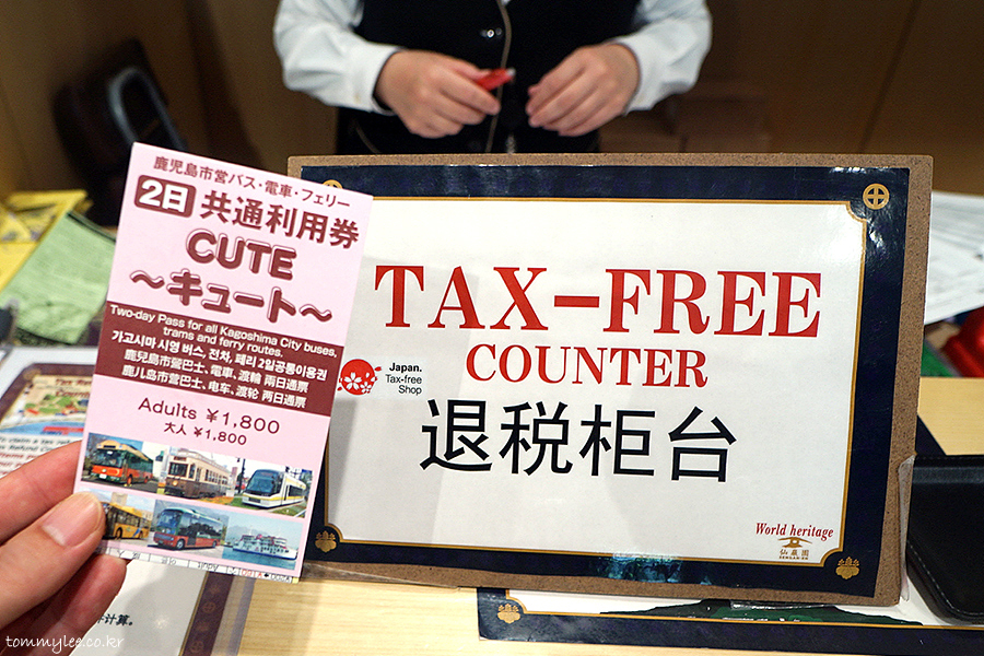 택스프리 카운터에 큐트패스를 제시하고 기념품을 받았습니다..