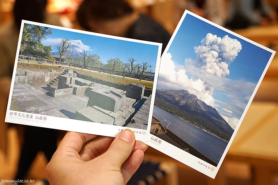 세계문화유산 센간엔이라고 쓰여있고.. 센간엔 입구 쪽에 있는 반사로유적 사진과 멋지게 폭발하고 있는 사쿠라지마 사진의 2가지 버전을 받았습니다..