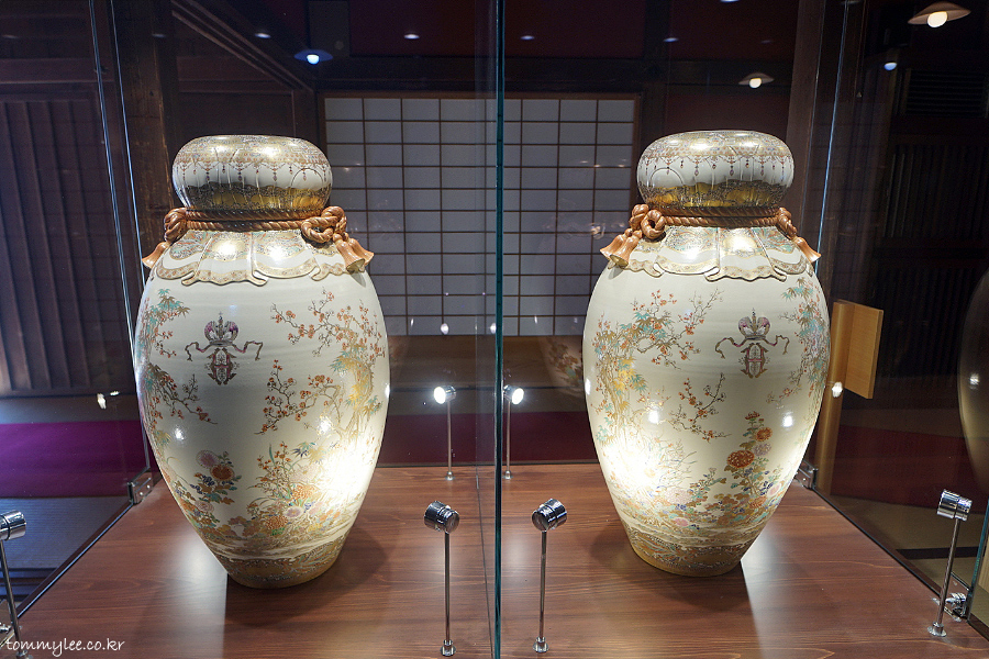 다들 아시다시피 임진왜란 후 조선에서 납치해 온 도공들에 의해 일본의 도자기 문화가 시작되었는데요.. 이곳 카고시마에서도 조선 도공들에 의해 사츠마야키 양식이 꽃을 피우게 되었습니다.. 전시된 사츠마야키는 러시아제국 최후의 황제 니콜라이 2세 대관식에 29대 번주 타다요시가 선물한 작품이라는 설명.. 원품은 당시 12대 심수관이 제작했고 현재 러시아의 에르미타주 미술관에 소장되어 있고.. 센간엔에 전시된 이 작품은 15대 심수관이 복원한 것이라고 하네요..