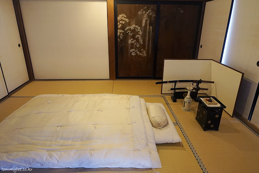 이불이 이렇게 있었는데.. 베개 위에 일본도가 있어서 빵 터짐.. 누가 사무라이 아니랄까 봐.. ㅋㅋㅋ..