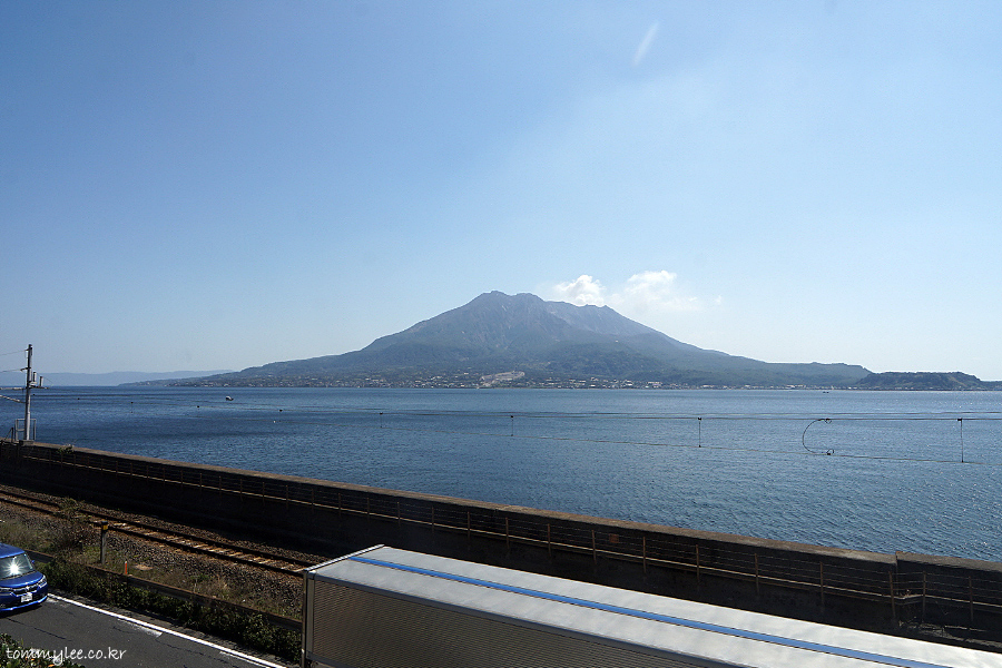 바다 쪽으로 시선을 돌려 보면.. 이렇게 카고시마의 심벌인 사쿠라지마가 배경으로 나와요.. 가고시마 하면 역시 사쿠라지마..