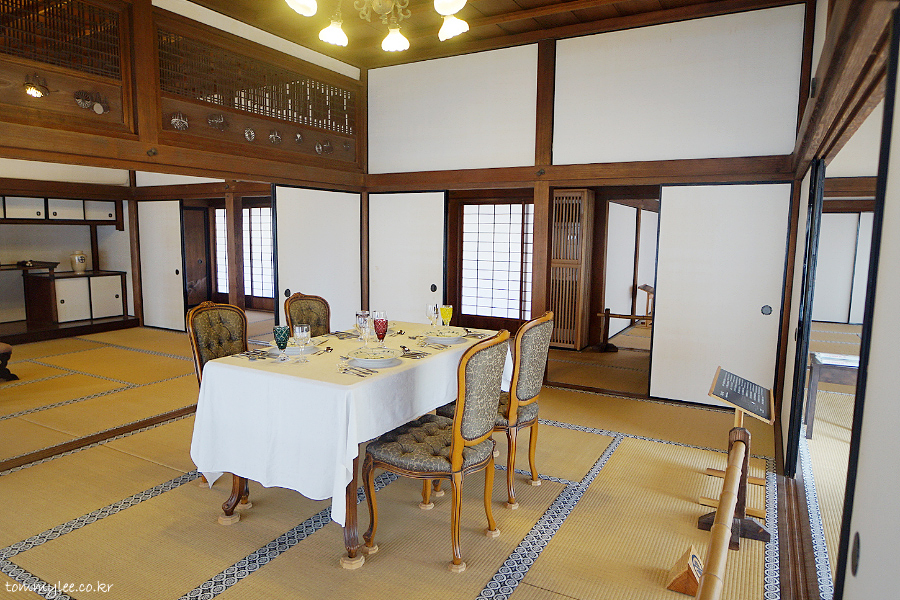 접견실은 방 2개를 튼 구조로 많이 넓었습니다.. 바깥쪽은 서양풍 안쪽은 와풍으로 꾸며져 있었네요..