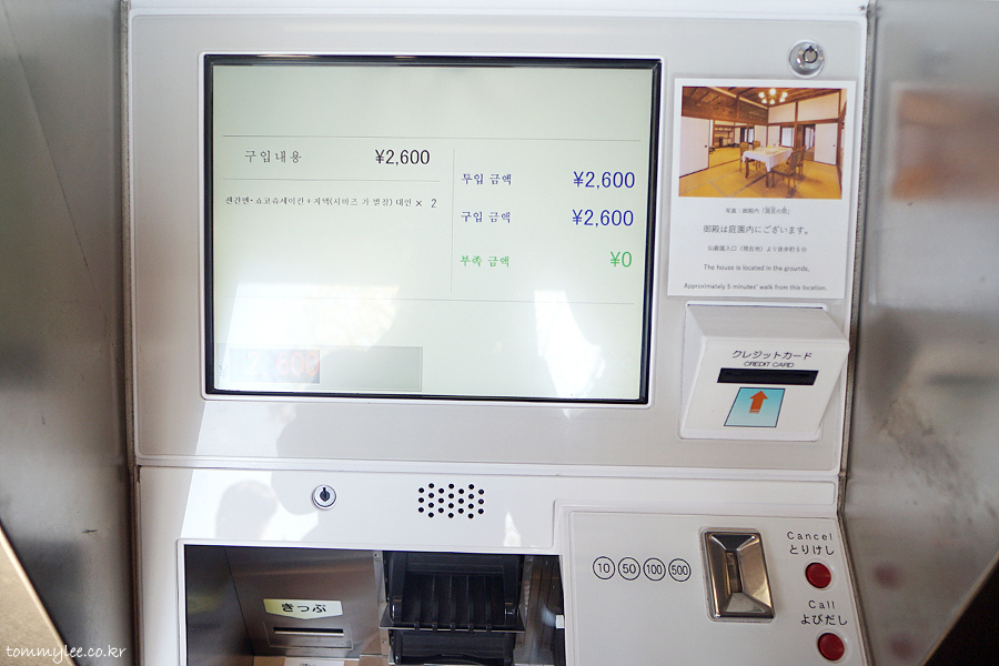 센간엔 매표소는 뭐 이런 느낌.. 완전 디지털.. 일본의 다른 다이묘정원들과는 달리 최신식 티켓 발권기를 도입하고 있었어요..