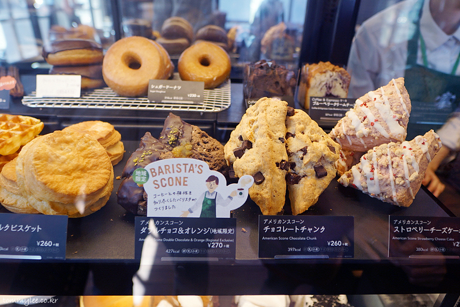 워낙 인기있는 곳이다 보니 주문 웨이팅은 피할 수가 없었답니다.. 기다리는 시간에 일본 스타벅스 푸드 메뉴들을 여유롭게 구경할 수 있었어요..