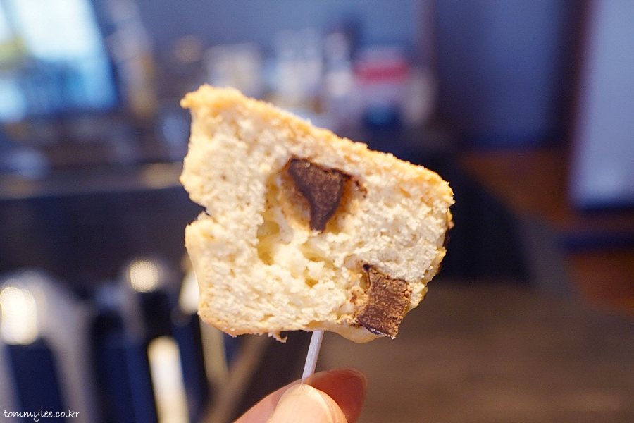 음료 기다리고 있는데 직원분께서 푸드샘플링 권해주심.. 아까 쇼케이스에서 봤던 초콜릿 청크 스콘이네요.. 암튼 바로 자른 스콘 시식해볼 수 있었어요..