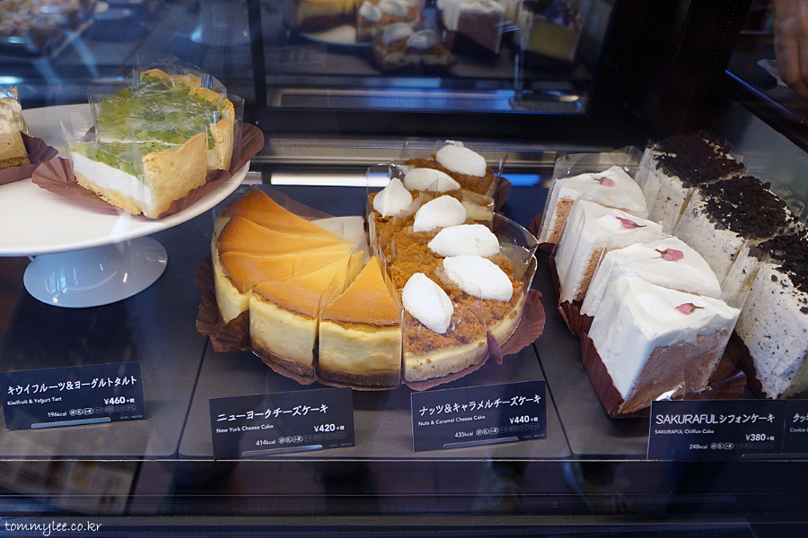 키위후르츠&요거트타르트, 뉴욕치즈케이크, 넛츠&카라멜치즈케이크, 사쿠라풀쉬폰케이크.. 케이크는 거의 400엔대로 한국 스타벅스보다 일본 스타벅스가 푸드메뉴만큼은 더 저렴하단 사실을 확인할 수 있었던 시간..