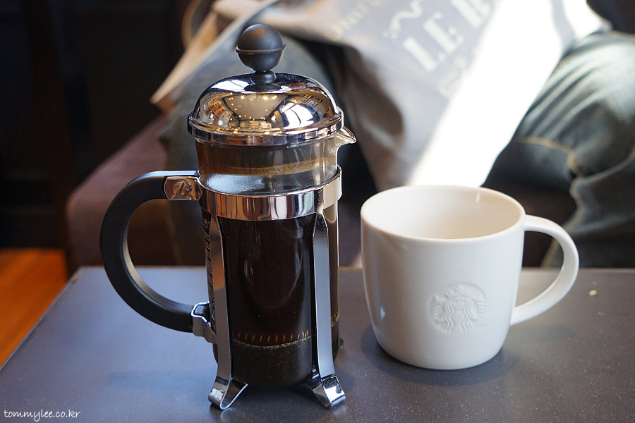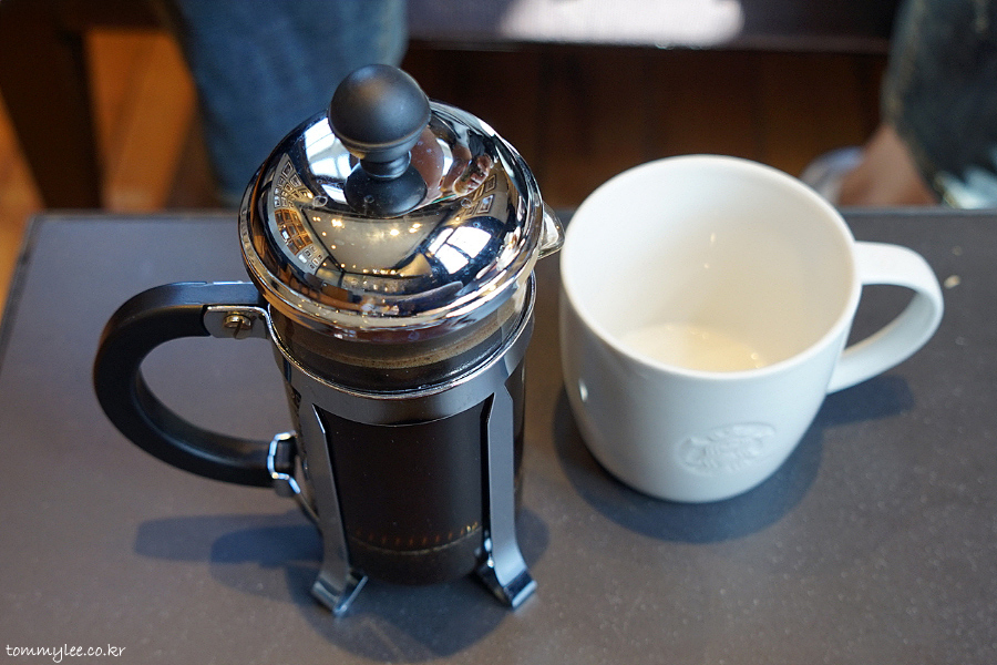 COFFEE PRESS에 SERVICE를 붙이네요.. 커피 프레스 오랜만에 보네요.. 타이머 돌렸다가 시간 맞춰서 종료시킨 후 따라 드심 OK..