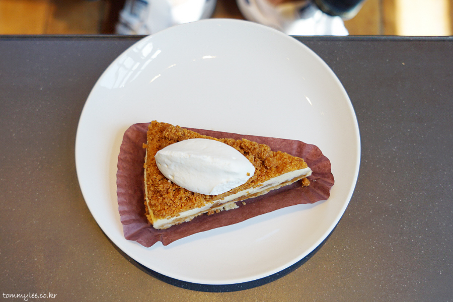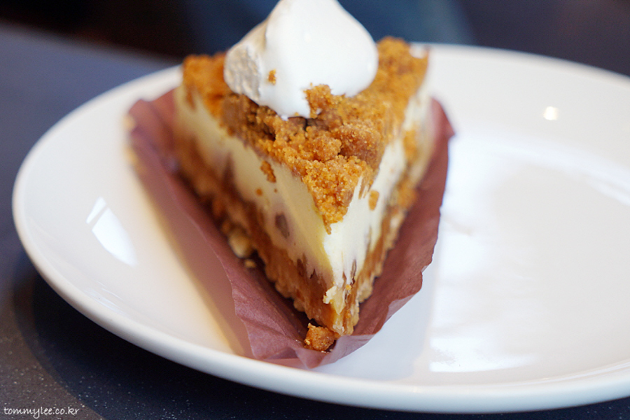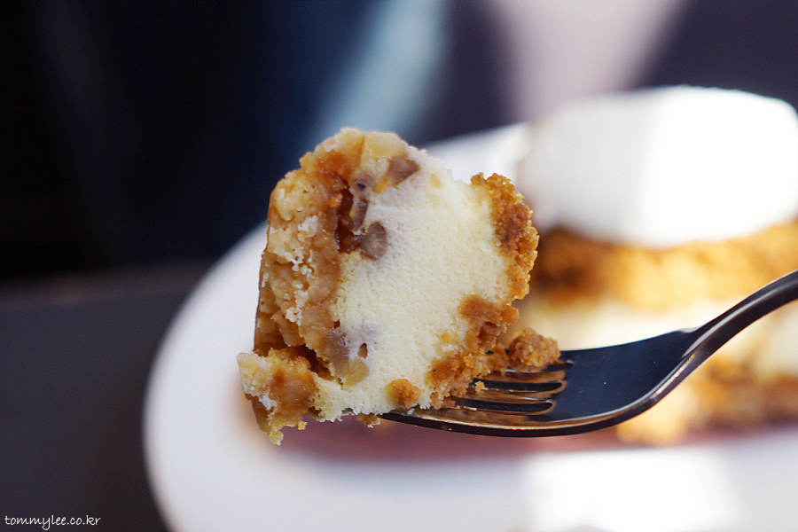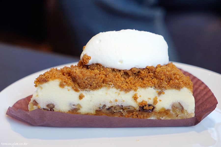 저는 깜찍한 자허토르테가 먹고 싶었는데.. 지인분의 선택은 넛츠 앤 캐러멜 치즈케이크였어요.. 카라멜 치즈케이크 위에 크럼블이 두툼하게 올라가고 그 위에 크림 토핑까지..