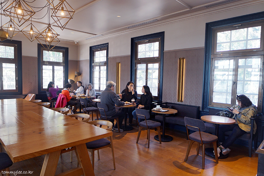 2층은 1층보다는 테이블이 훨씬 여유로운 느낌이었습니다.. 주말이고 주문 웨이팅이 길어서 빈 테이블 없을 줄 알았는데 의외로 앉을 수 있는 곳이 많았다는 거..