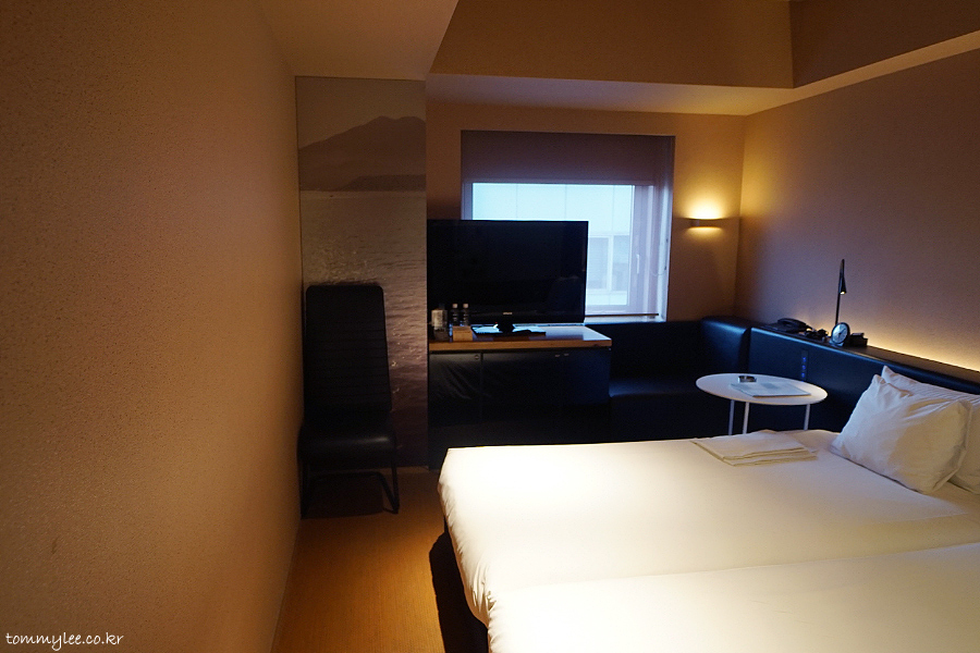 렘카고시마 트윈룸 B타입입니다.. A타입과의 차이는 욕조가 있냐 샤워부스만 있냐입니다.. 객실로 들어서면 이런 느낌..