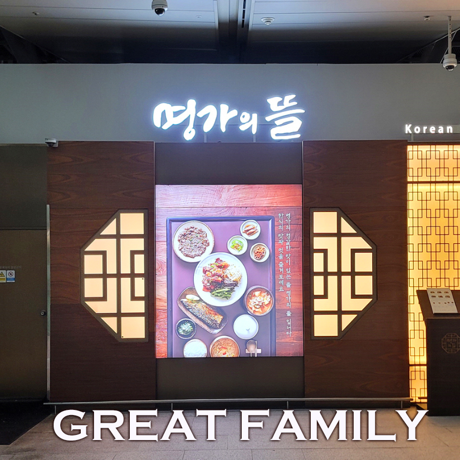 KOREAN DINING.. THE GREAT FAMILY'S YARD.. 한식당 명가의 뜰.. 영업시간 : 06:30~22:00.. 위치 : 인천공항 제1여객터미널 일반지역 4층 중앙.. 전화번호 : 032-743-4834..