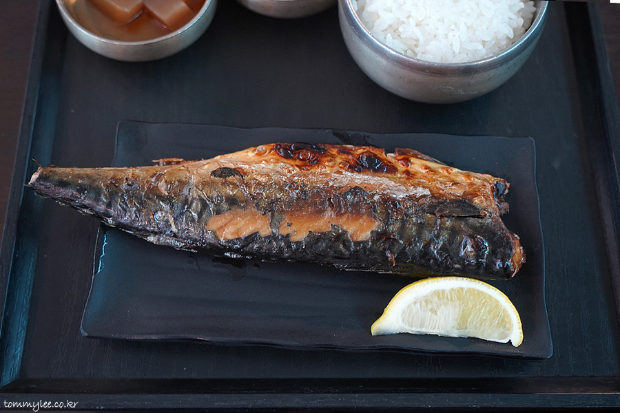 고등어구이는 꼬리부분이 접시 밖으로 살짝 삐져 나올 정도로 볼륨이 있습니다..
