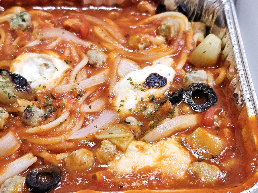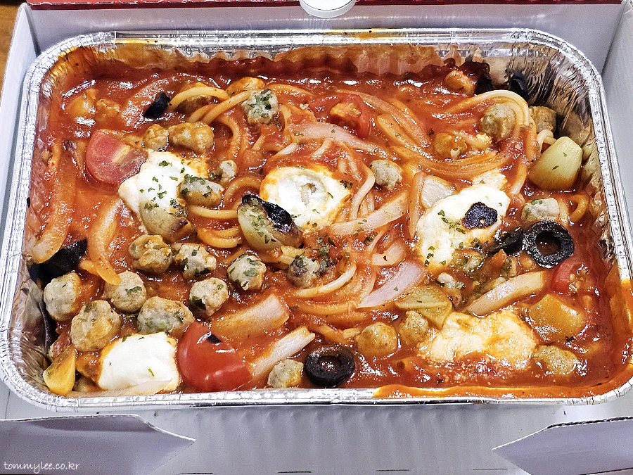 토마토, 양파, 마늘, 블랙 올리브도 넉넉하게 들어있고 맛이 전체적으로 풍성한 느낌..