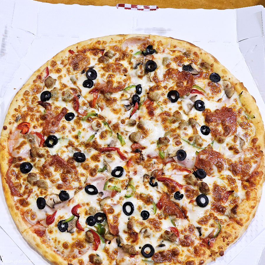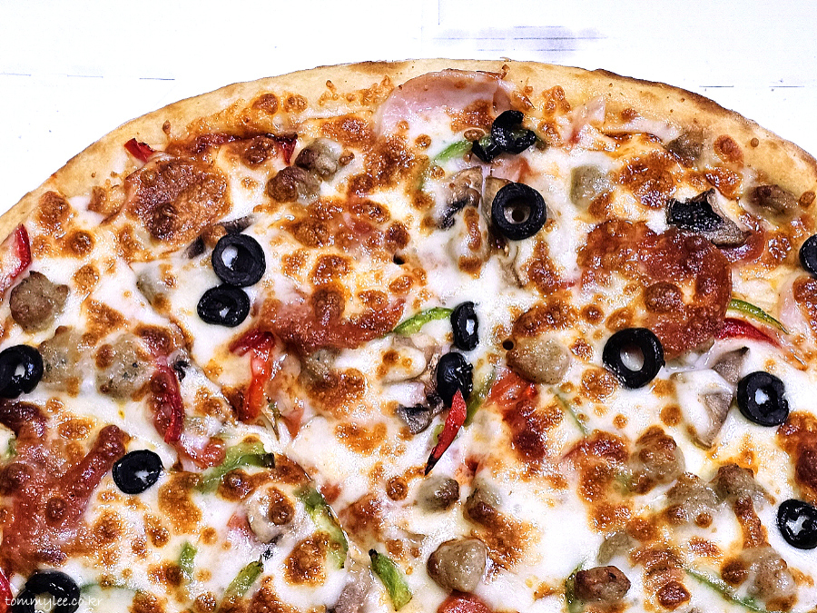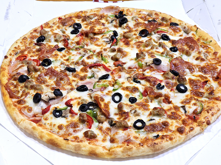 토마토소스 베이스에 모르타델라햄, 페퍼로니, 미트볼포크, 양파, 홍피망, 청피망, 양송이, 블랙올리브, 모짜렐라치즈가 들어간 탄탄한 구성..