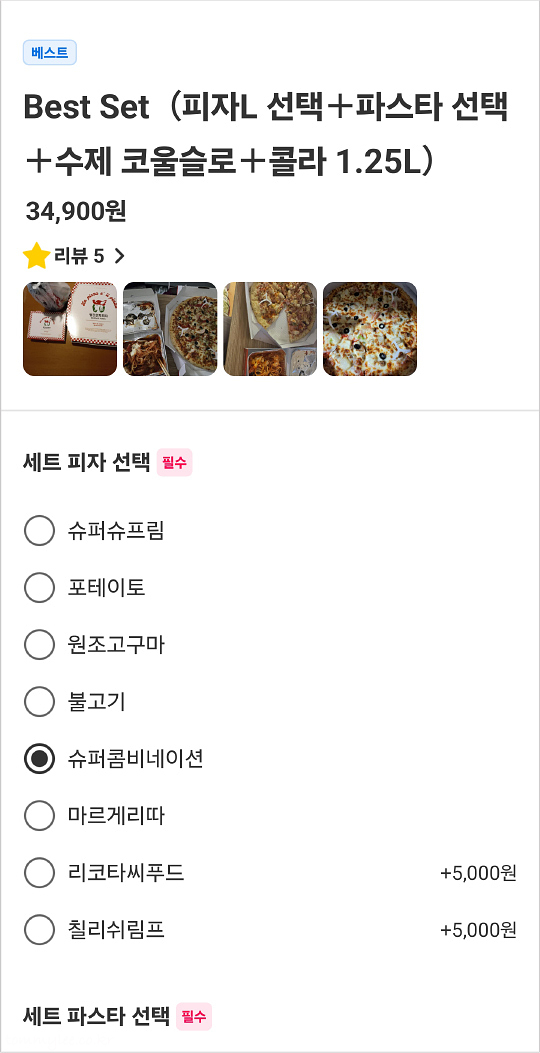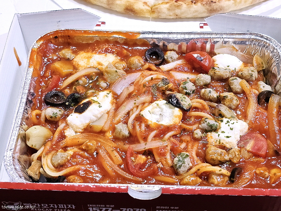 지인분께서 파스타 주문도 희망하셔서 세트로 주문하게 되었어요.. 슈퍼콤비네이션 피자에 리코타미트볼 스파게티 조합으로 세트 주문.. 빨간모자피자 세트 할인율은 11%로 소소합니다.. 세트는 코울슬로와 1.25 콜라를 무료로 준다고 생각하시면 된다는.. 코울슬로, 콜라 필요 없으시면 세트 주문이 전혀 의미가 없으니 패스하시면 됩니다..