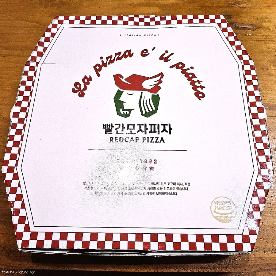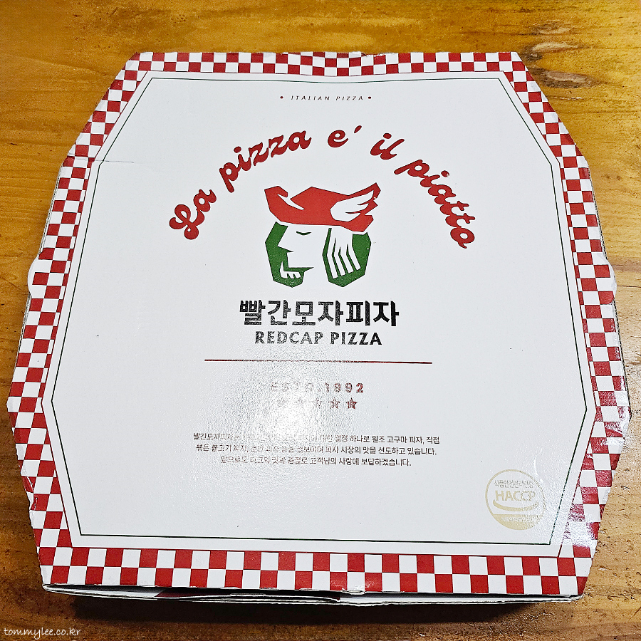 빨간모지피자는 1992년부터 오직 피자에 대한 열정 하나로 원조 고구마피자, 직접 볶은 불고기피자, 로만피자 등을 선보이며 피자 시장의 맛을 선도하고 있다는 내용이 박스에 쓰여있습니다.. 고구마피자의 원조였나요??.. ㅡㅡa..