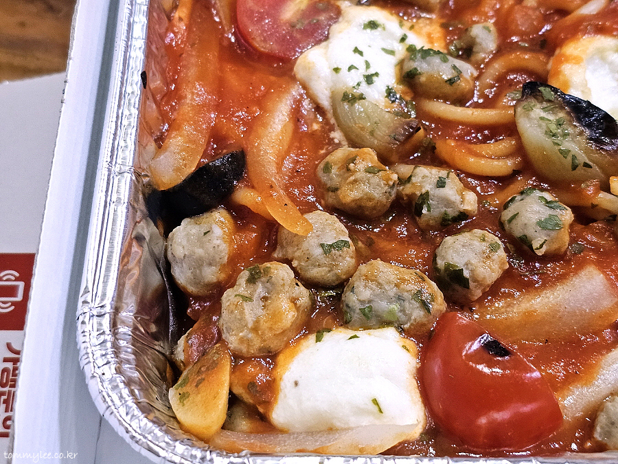 소스양이 넉넉한데다 미트볼이 이렇게 충실하게 들어가 있었답니다.. 의외로 미트볼이 충실했어요..