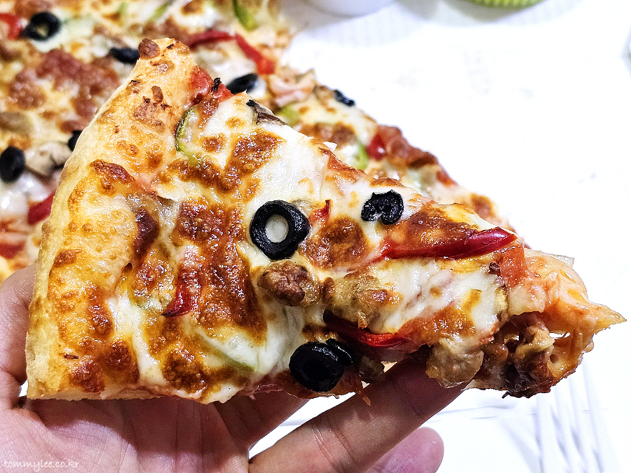 왜 이탈리안 도우라고 하는지는 잘 모르겠지만.. 텍스춰도 그렇고 도우맛이 생각보다 좋네요.. 제 기억 속의 빨간모자피자보다 도우가 더 맛있었음..
