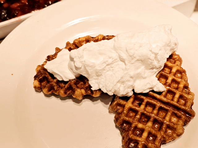 이렇게 애슐리표 크로플이 완성됩니다.. 갓 구워낸 크로플은 역시 맛있어요..