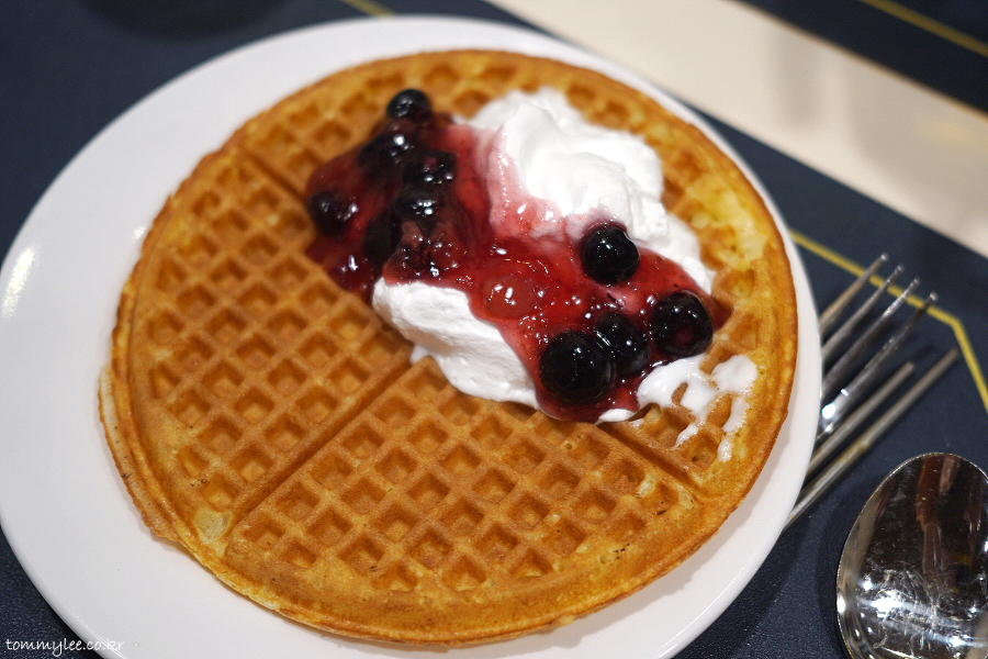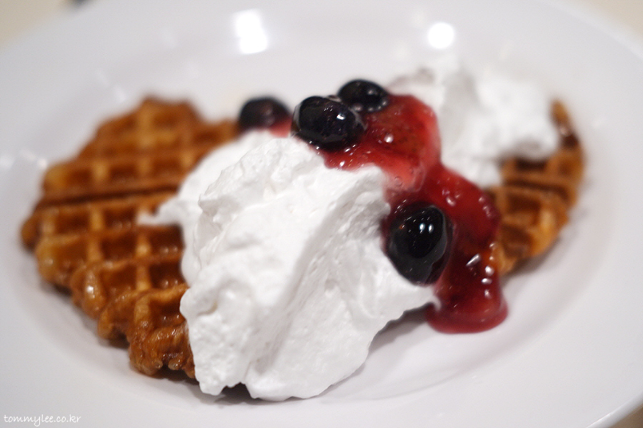바삭하게 구워진 버터 와플에 휘핑크림과 블루베리 토핑.. 역시 바로 구운 와플은 사기템이네요.. 넘 맛남..