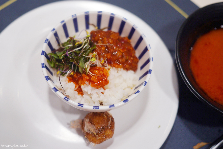 통영식 해초 멍게 비빔밥과 마라탕 스프 + 타코야키 1알로 지인분께서 마무리하심..