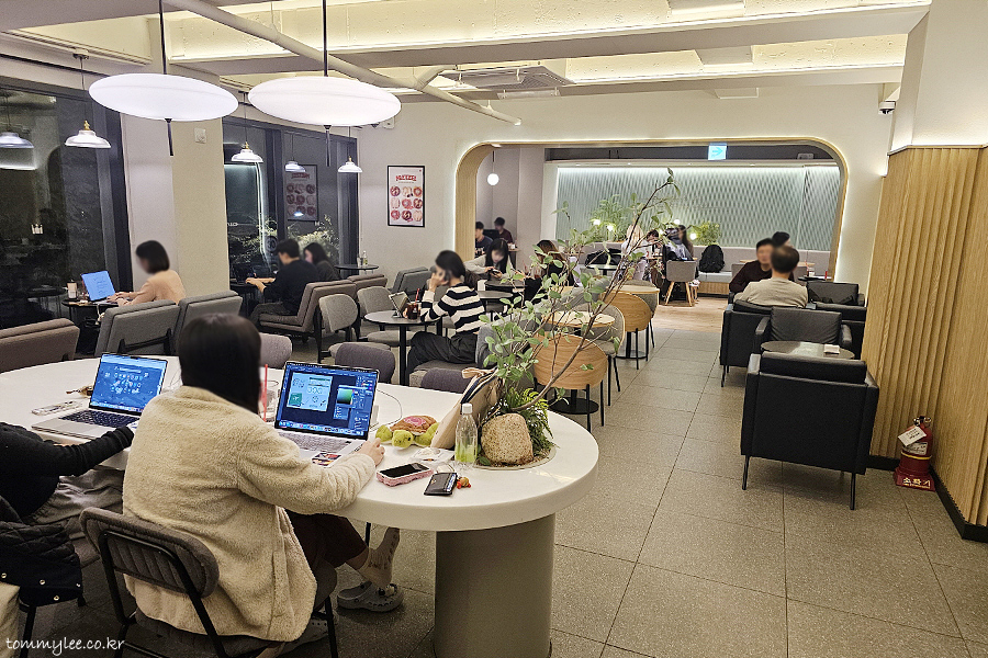 HOLLYS COFFEE.. YEONTRAL PARK.. 할리스 연트럴파크점.. 영업시간은 08:30~24:00, 주말은 새벽 1시까지..