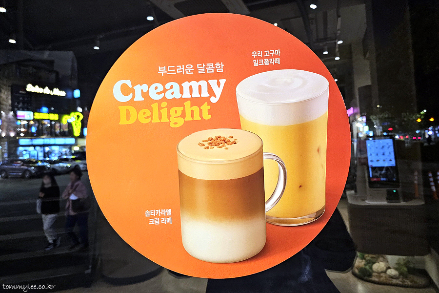 할리스의 가을은 우리고구마 밀크폼라떼와 솔티카라멜 크림 라떼였지만.. 저는 유플러스 카페라떼를 마셔야 해서.. ㅠ.ㅠ..